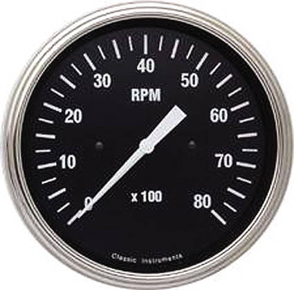 Instrument Gauges - Tach 8000rpm - Hot Rod Series - Curved Lens (Black Face) 12v