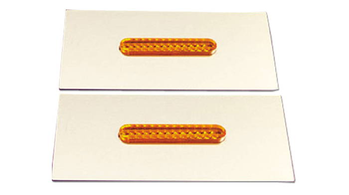 This flush mount "Lens Only" panel kit measures 2-3/4 inches with metal plate. Has an amber single rectangular slot lens with rounded ends. Lens is 1/2 inch x 2-3/4 inch.
