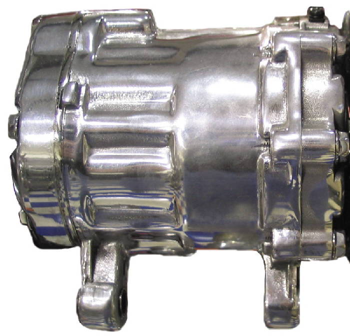 Chevrolet Air Conditioning Compressor, Polished Sanden R-134A, V-Belt Pulley