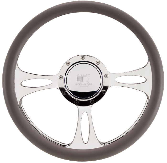 This is a 14 inch Billet Specialties "Fast Lane" steering wheel. Half wrap.