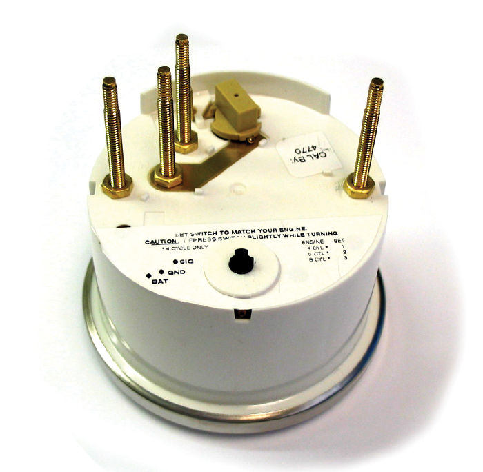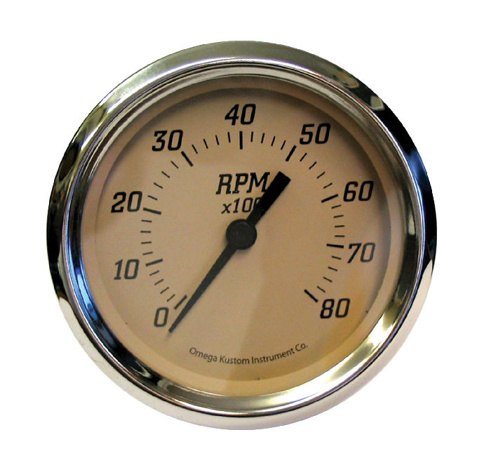 Instrument Gauges, 3-3/8" Tach. Tan Face, Silver Bezels
