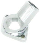 This is a chromed thermostat housing for 1966-75 SB Chevy 283-350 with an O-ring seal. The opening points straight up. The O-ring and mounting hardware are supplied.