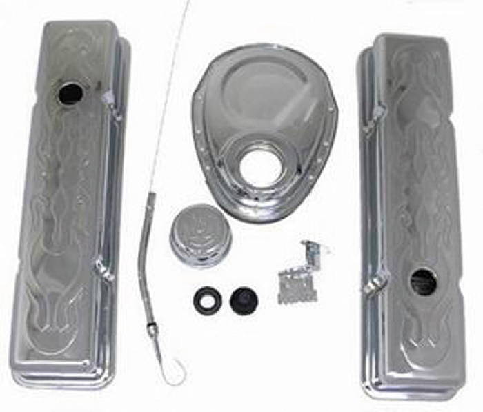 Engine Dress-Up Kit, Chrome Small Block Chevy- Tall Valve Cover (Flames)
