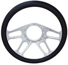 Steering Wheel, 14" Chrome Aluminum "4 Slot" Style With Leather Grip