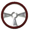 Steering Wheel, 14" Chrome Aluminum "3 Tri" Style With Leather Grip