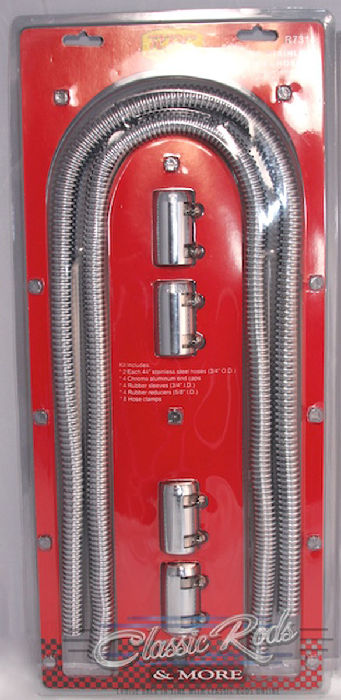 Heater Hose Kit, Stainless Steel With Chrome Aluminum Caps