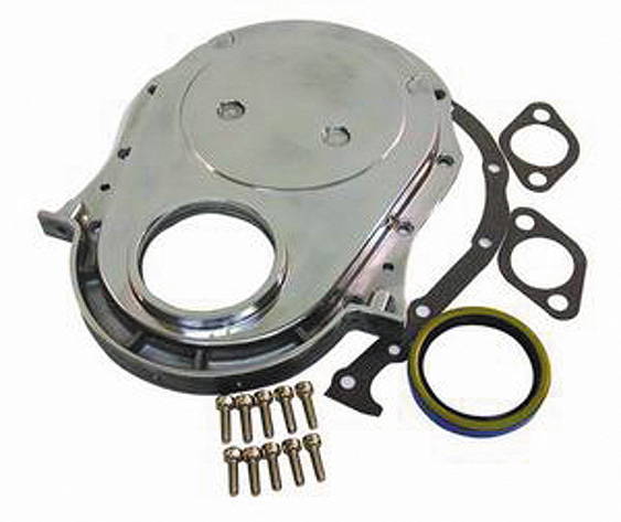 Chevrolet Timing Chain Cover Kit, Polished Aluminum BB Chevy (Includes Gaskets, Seal & Hardware)