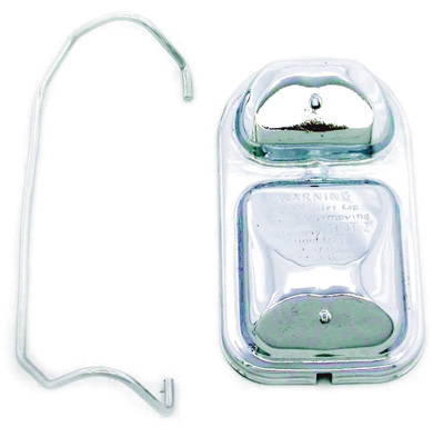 This is a chrome 1971-79 Chrysler, Dodge and Plymouth (Mopar) master cylinder cover with the bail to keep it closed.