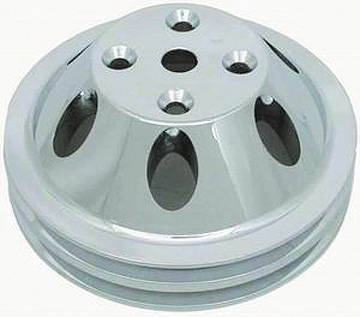 Chevrolet Water Pump Pulley (Long Water Pump) Double Groove, Polished Aluminum Small Block Chevy