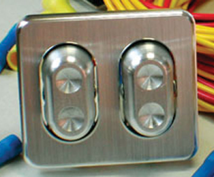The dual switch kit is intended for center console mounting or if you want both switches on the driver door only. Dual switches are 2" wide by 1-3/4" high frame, (2) polarity reversing modules, wire leads and instructions.