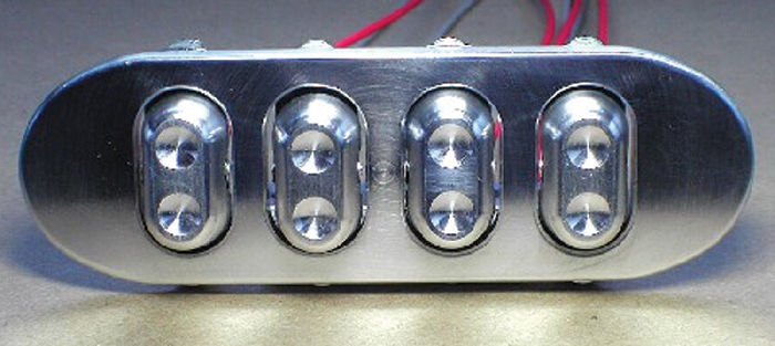4 of our Billet 3-wire rocker switches mounted in an Oval billet frame that's 4-7/8" wide by 1-5/8" high. Use as a driver door control for power windows on a 4-door or as a stand-alone console switch center. NOTE: This panel is sold without relays or polalrity reversing module(s), so be sure to explain your needs to our tech staff when you order. AT LEAST ONE ADDITIONAL REVERSING MODULE will be needed when using this panel with other of our Oval Billet Power Window Switches listed above.