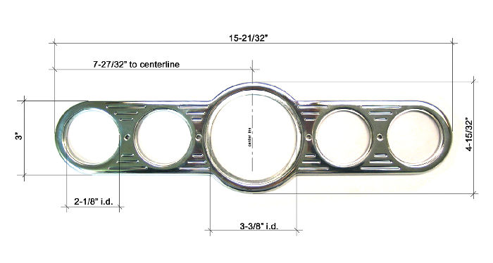 Dash Panel Universal - Billet Aluminum, Polished - 5 Gauge 3-3/8" Speedo