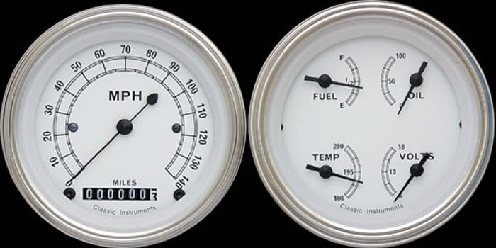Instrument Gauges - Ultimate Speedometer (3-3/8") Speedo Tach Combo With Quad Gauge - Classic White Series With Curved Lens 12v