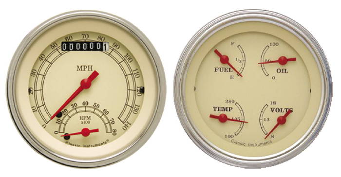 Instrument Gauges - Ultimate Speedometer (3-3/8") Speedo Tach Combo With Quad Gauge - Vintage Series With Flat Lens 12v