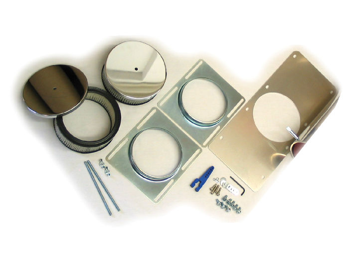 Smooth "Shotgun" style intake scoop for dual quad or single quad applications. Includes bases, filters, scoop and mounting hardware.