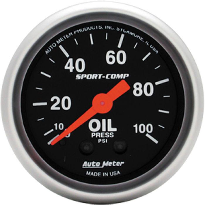 Instrument Gauges - Auto Meter Sport Comp Series 2-1/16" Oil Pressure Gauge. Mechanical 0-100 Psi., Full Sweep