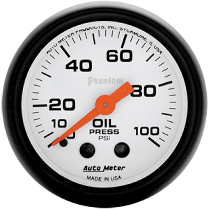 Instrument Gauges - Auto Meter Phantom Series 2-1/16" Oil Pressure Gauge. Mechanical 0-100 Psi., Full Sweep