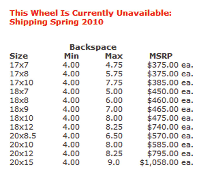 Bolt Patterns: 5 x 4-1/2 and 5 x 4-3/4. 5-1/2 (Special Order)
