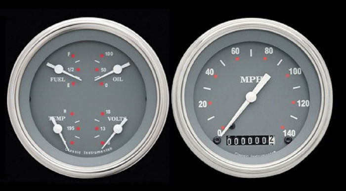 Two Gauges: 3-3/8 inch Speedo and standard quad-cluster. Curved lens.