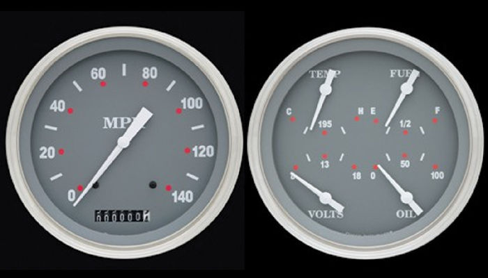 Instrument Gauges - 5" Speedo & Quad-Cluster - Silver-Grey Series With Flat Lens 12v