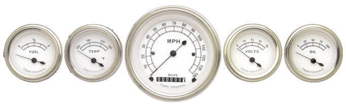 Instrument Gauges - (5 Gauge Set) - Classic White Series With Curved Lens 12v