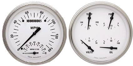 Instrument Gauges - Speedtachular Speedo Tach Combo With Quad Gauge - White Hot Series With Curved Lens 12v