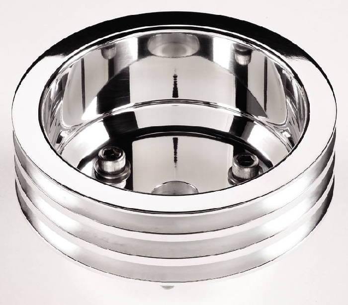 Chevrolet Crank Shaft Pulley, Billet Aluminum - Triple Groove -Long Water Pump